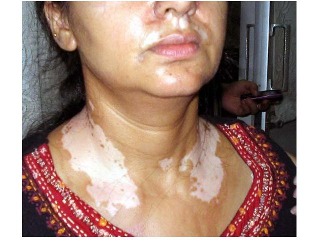 किलास और अरुण श्वेत दाग जब रक्त के आश्रय से होता है तो शिवत्र और जब मॉंस आश्रय से होता है तो किलास कहलाता है। दोष भेस से लक्षण भेद चरक के मतानुसार बात से पैसा हुआ शिवत्र कुछ लाल होता है और मॉंस में रहता है। कफ से पैदा हुआ शिवत्र सफेद होता है और भेद में रहता है। वात जनित शिवत्र से पित्त जनित और पित्त जनित से कफजनित शिवत्र कठीन होता है।page no. (6) रोग के कारणों के सम्बन्ध में आधुनिक कथन यह है कि यकृत ( ) की खराबी ही मूल कारण है । उसके अनुसार त्वचा में मिलेनिन( ) की मात्रा कम हो जाती है तो वहॉं कि त्वचा का रंग सफेद हो जाता है। आधुनिक मतानुसार त्वचा में यह पदार्थ होता है ।यह पदार्थ त्वचा की वर्ण व्यवस्था बनाये रखता है। जब किसी कारणवश यह पदार्थ कम हो जाता है तो वहॉं की त्वचा का रंग बदलने लगता है। त्वचा का रंग मिलेनिन पर निर्भर करता है। इस प्रकार त्वचा का वर्ण स्थिर में जहॉं प्रोटिन आवश्यकता है।वहॉं ताम्रा की आवश्यकता है।
